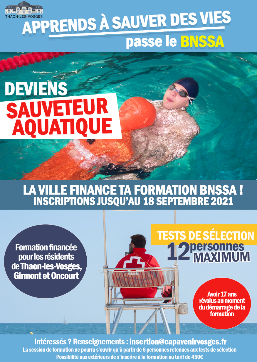 Si vous souhaitez devenir sauveteur aquatique et que vous habitez Thaon-les-Vosges, Girmont ou Oncourt, la ville vous aide et vous accompagne.