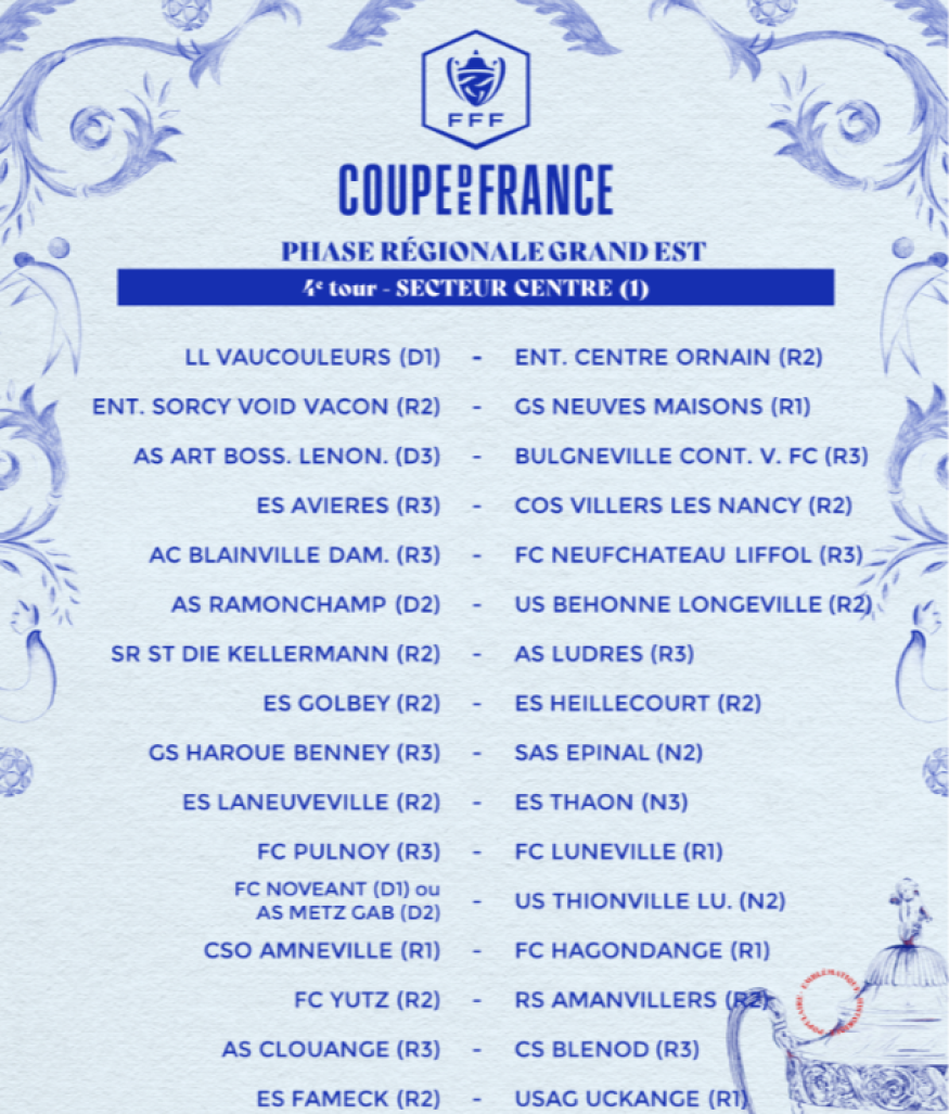 En Football, le tirage au sort du 4ème tour de la Coupe de France a eu lieu hier soir. Voici les matchs prévus les 28/29 septembre: