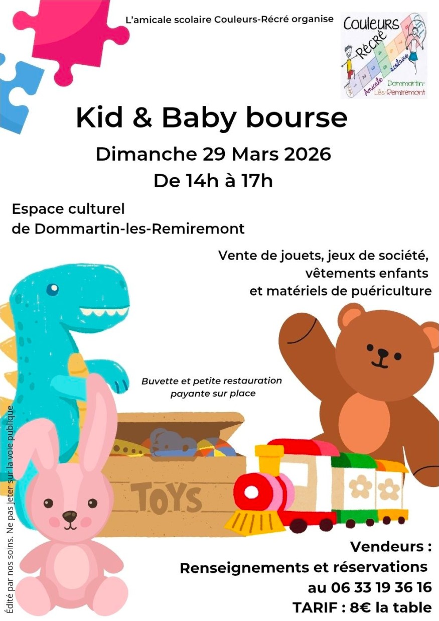 Passez votre week-end à Dommartin-lès-Remiremont ! L'association de parents d'élèves "Couleurs Récré" vous invite à deux événements. Une bourse aux jeux samedi après-midi avec des puzzles, des jeux de société, de cartes et de plateau. Et puis le lendemain, dimanche, c'est kid et baby-bourse ! De quoi équiper les enfants à petit prix. A cette occasion, Cécile Jacquot accueille Stéphanie Gosselin dans les Bonnes Idées Vosges FM, présidente de l'association Couleurs Récré.