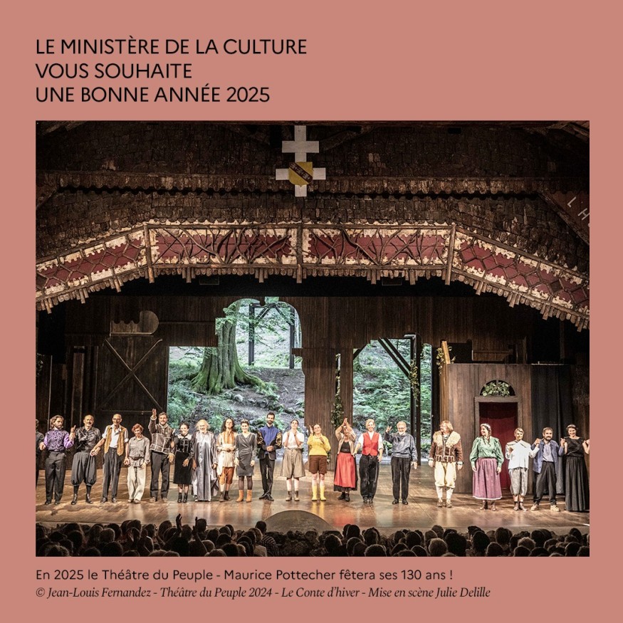La carte de voeux 2025 du Ministère de la culture est illustrée cette année par une photo représentant le Théatre de Bussang ! Établissement qui fêtera cet été ses 130 ans #FiertéVosgienne