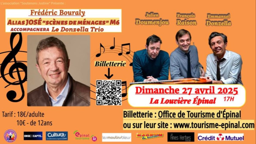 Frédéric Bouraly, José dans "Scènes de Ménage", est notre invité du jour sur Vosges FM. Le dimanche 27 avril prochain, il sera présent à Epinal pour un concert solidaire avec le Donzella Trio. Le but sera de récolter des fonds pour l'association vosgienne "Soutenons Justine".