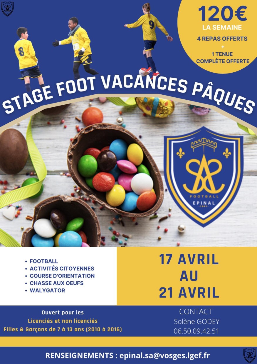 Romain Gotté, responsable de l'administration sportive au sein du SAS Epinal, vous invite à participer à ce nouveau stage du 17 au 21 avril!