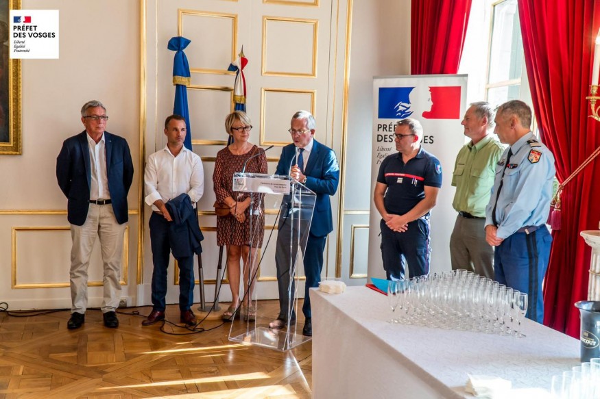 Hier, la Préfecture des Vosges a invité les acteurs vosgiens qui ont lutté contre les feux de forêts cet été à une cérémonie de remerciements. Pompiers, gendarmes, agriculteurs et associations étaient présents au côté du Préfet, Yves Séguy.