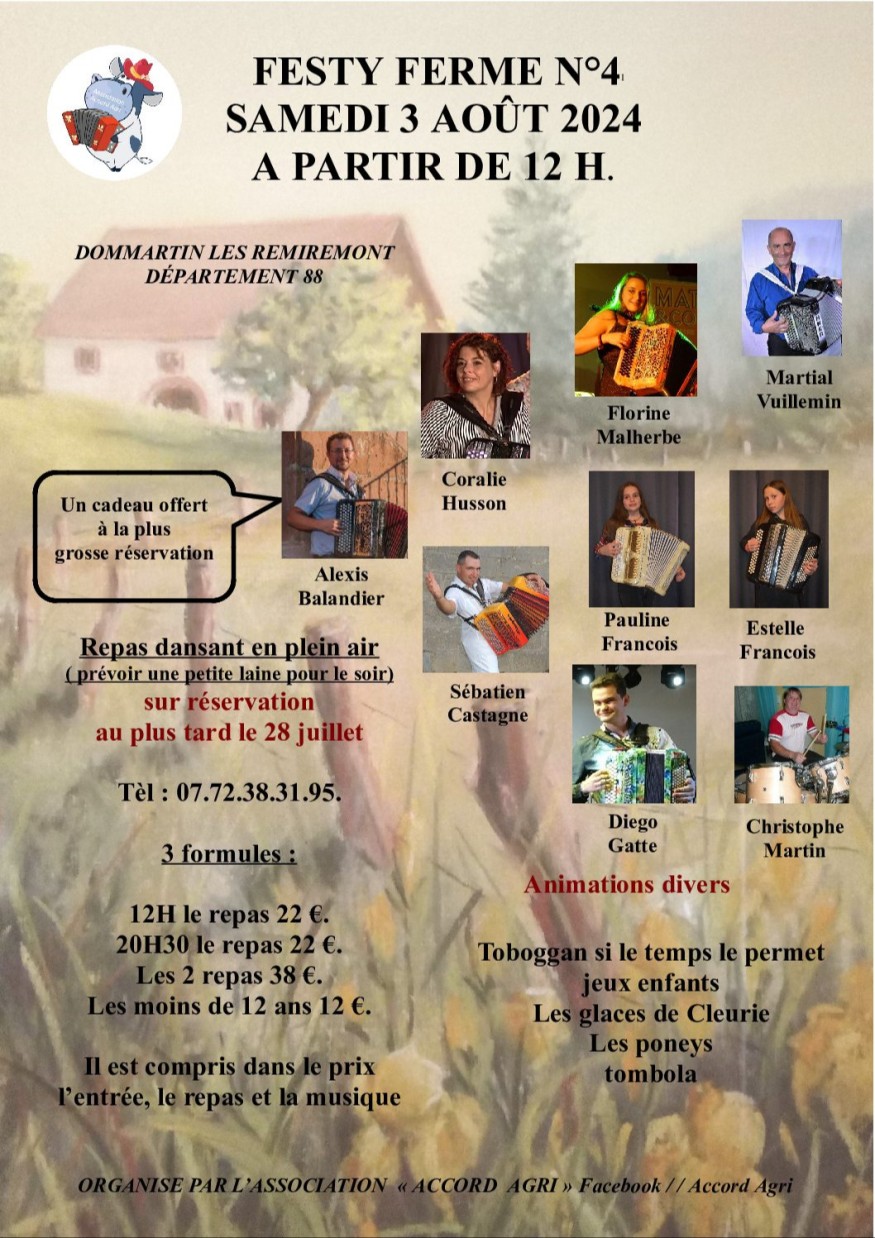 Marylise François, secrétaire de l'association "Accord Agri", vous invite à la 4e édition de Festy Ferme ce samedi 3 août à Dommartin! Rendez-vous rue des Tilles pour apprécier ces repas et les nombreux accordéonistes qui seront présents lors de cet événement.