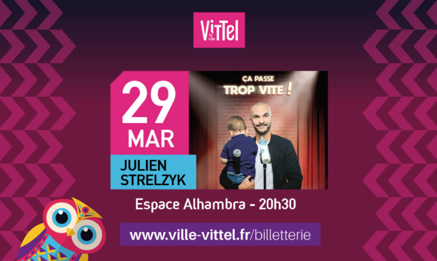 Julien Strelzyk sera en spectacle le 29 mars prochain à Vittel avec son spectacle "ça passe trop vite"! Il relate la naissance de son bébé et ses premiers pas en tant que père. Le manque de sommeil, les conseils des grands-mères, le couple, la sexualité, ... seront aussi abordés!